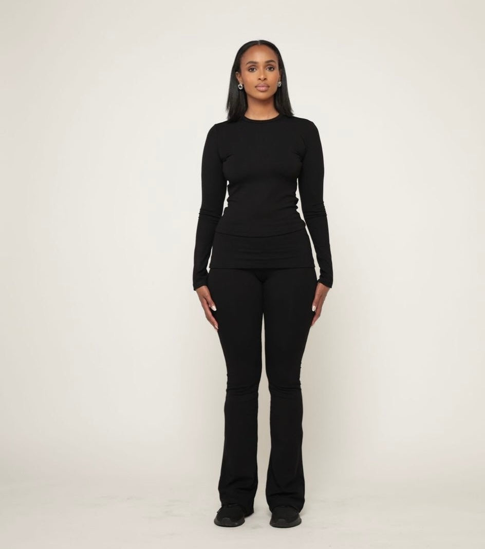 Fold over flare pants set with matching top - Black