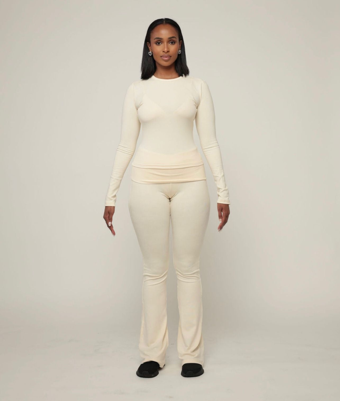 Sheer Version: Aläi Foldover Pants Set- Cream